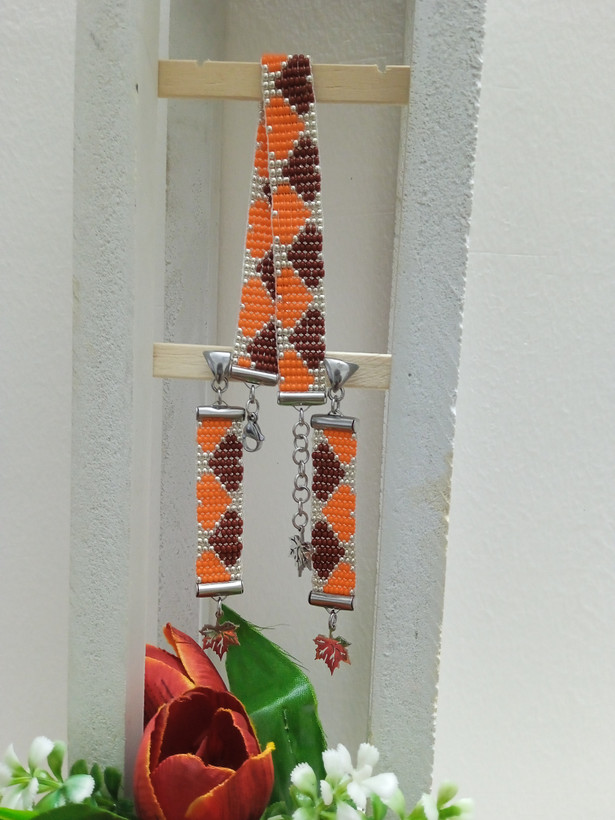 دستبند گوشواره منجوق و آویز برگ استیل : 1