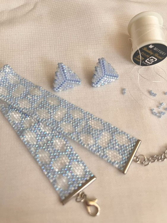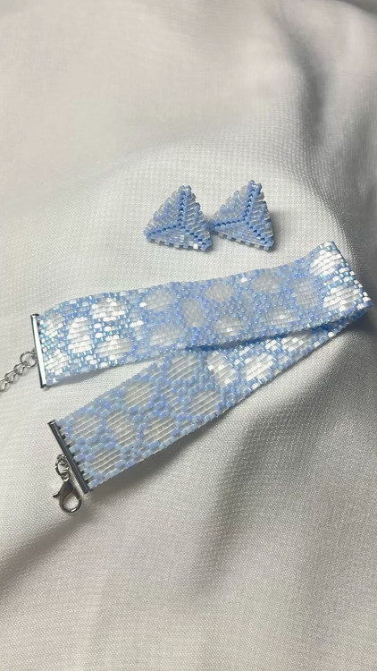 قیمت گوشواره 600تومان و قیمت دستبند 1/200/000هزار تومان هست.بافته شده با منجوق میوکی ژاپن و اتصالات استیل رنگ ثابت ضد حساسیت